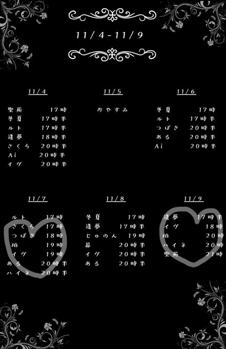 兵庫・神戸・三宮 べりえむナイト固定べりえむナイト❖男装コンカフェ@Veri_m_v·皇子出勤表 11/4〜11/9 OPEN 17:00〜 ◯おやすみ 11/5(水) 皆様のご入国お待ちしております。 #男装カフェ #コンカフェ #神戸三宮4314