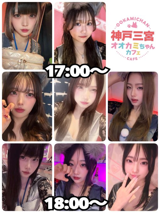 オオカミちゃんカフェ神戸三宮店@ookamichancafe·10月4日(土) 本日出勤のオオカミちゃん🐺 17:00~ 💛もも💛みゆ 💛ここみ💛べる 💛れい 18:00~ 💛ありあ💛まき 💛なみ💛じう 💛きらら 19:00~ 💛ある💛えり 💛めあ💛ねる 20:00~ 💛めい 21:00~ 💛かのん 💛みるく #オオカミちゃんカフェ #神戸 #三宮 #三ノ宮 #関西コンカフェ #コンカフェ206