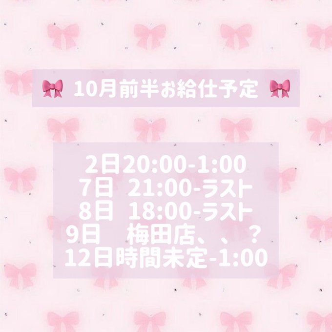 固定あみ🎀コンカフェ神戸三宮@pinmin_k_ami·お待たせしましたっ🐰♡ 10月前半シフトだよ➰❕ 9日はこちらの都合で梅田店しゅ!になるかもですт т 10月もよろしくお願いします🫶🏻 #神戸三宮 #神戸三宮コンカフェ #三宮コンカフェ #コンカフェ #コンカフェキャスト #コンカフェ嬢ピンクモンスター&ミンティモンスター神戸三宮230