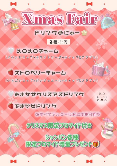兵庫・神戸・三宮 ヴァンパイアサイド-BAD TRIP-【尼崎コンカフェ】ヴァンパイアサイド-BAD TRIP-@vmpbarBT·◣ クリスマス ◥ 12.23(火)~25(木) *↟⍋*↟ バットリにも初めてのクリスマスがやってきたのだ〜‼️🪼 イベント中は 特別メニューをご用意🎁 氏族ちゃん達の限定衣装も見られて、 クリスマス気分最高潮なのだ!🎄♡ . 限定シャンメリーの詳細・予約は 推氏族ちゃんのDM/遠隔へ🎅🏻✨11195