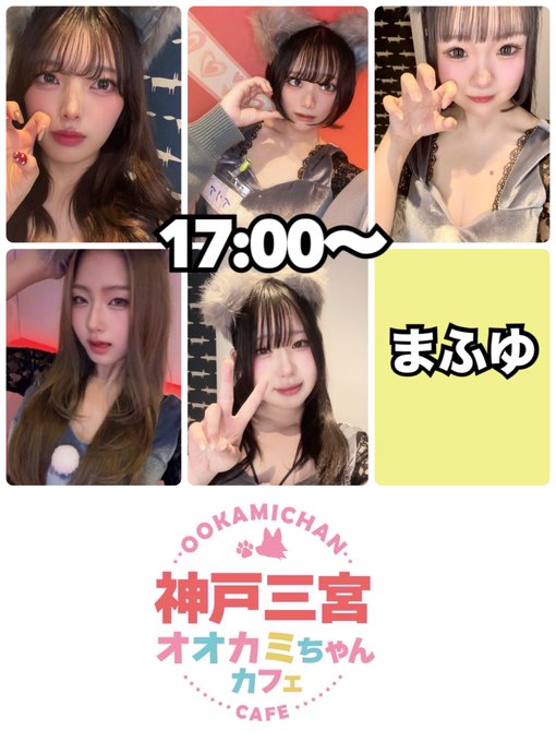 兵庫・神戸・三宮 オオカミちゃんカフェ三宮店オオカミちゃんカフェ神戸三宮店@ookamichancafe·12月8日(月) 本日の出勤情報🐺 17:00~ 💛にゃみ💛ありあ 💛ここみ💛なる 💛べる 18:00~ 💛きぬ 19:00~ 💛ねむ💛まき 20:00~ 💛あいり 22:00~ 💛かのん #オオカミちゃんカフェ #三宮 #三ノ宮 #コンカフェ392