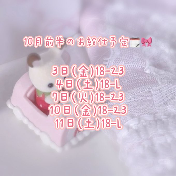 固定あいら🎀コンカフェ神戸三宮@pinmin_k_aira·10月前半のお給仕予定です🗓🎀 限界学生さんなので週末がんばるます🐰ྀི 推しごしゅ募集中です♡⸝⸝ 新人コンカフェ嬢拾ってください> < ՞ 学生さん頑張ってるのでお給仕少ないけど 来店と遠隔たくさん待ってます💘56