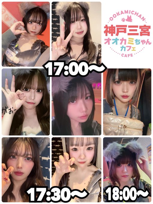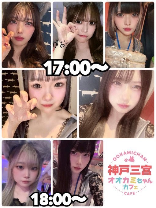 兵庫・神戸・三宮 オオカミちゃんカフェ三宮店オオカミちゃんカフェ神戸三宮店@ookamichancafe·12月11日(木) 本日の出勤情報🐺 17:00~ 💛るい💛ありあ 💛りりあ💛にゃみ 💛もも 17:30~ 💛べる💛なる 18:00~ 💛あいり💛さくら 18:30~ 💛らい💛なみ 19:00~ 💛きぬ💛まき 💛めあ💛ひかり 22:00~ 💛ここあ #オオカミちゃんカフェ #神戸 #三宮 #三ノ宮 #コンカフェ2133