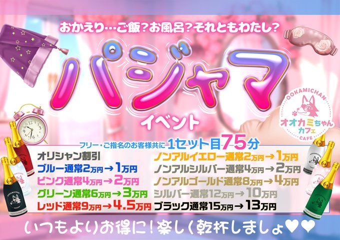兵庫・神戸・三宮 オオカミちゃんカフェ三宮店オオカミちゃんカフェ神戸三宮店@ookamichancafe·今週のイベント情報🐺 12/12(金),12/13(土) パジャマイベント🎶 ゆうあさんバースデーイベント🎂 12/14(日) 日曜限定イベント☀ ※イベント内容について、詳しくは画像をご確認ください❕ ご来店お待ちしております♡ #オオカミちゃんカフェ #三宮 #コンカフェ146