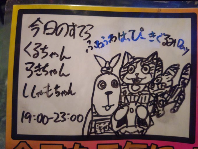 地和@🌟アニソンカフェすてら🌟さんがリポストアニソンカフェすてら@anisonbarstella·#アニソンカフェすてら! 本日もヒーローの皆様ありがとうございました! 明日はお休みです! よろしくお願いします! #今日のすてらの出勤ボード #堀川国広2379