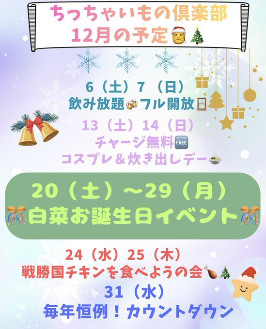 固定ちっちゃいもの倶楽部🦖🦕@chiikuratanoshi·今年も残すところあと1ヶ月‥👀 12月前半もよろしくお願いします!!🙌 #ちぃ〜クラ #コンカフェ #京都コンカフェ510412