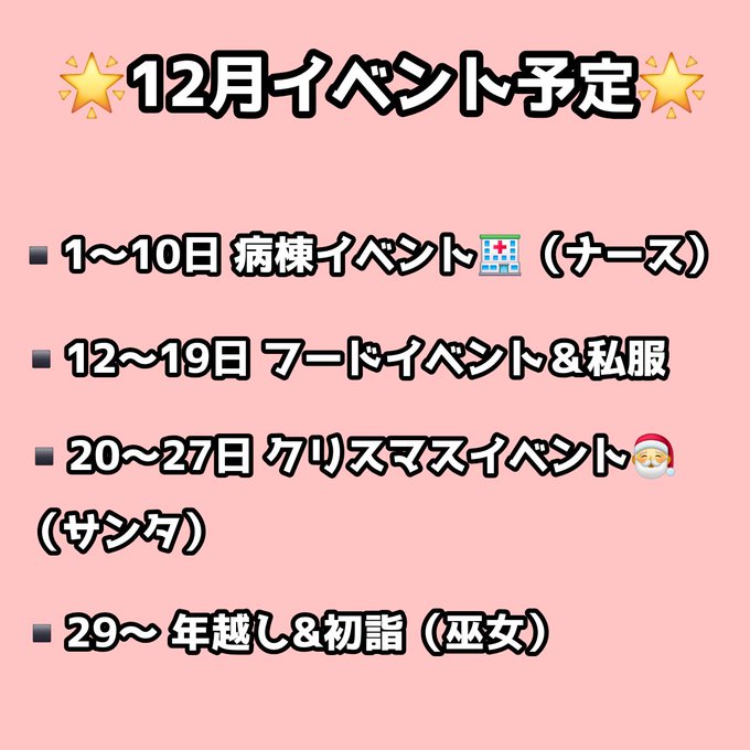 滋賀・奈良・その他 ぽじてぃぶeXとりーむ計画固定なまえはまだない@Nana_posipro·︎🌟12月前半お給仕予定︎🌟 💫12月イベント予定💫 かわいい衣装着たななが見れます😻🫶🏻260