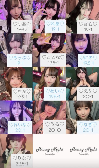 兵庫・神戸・三宮 コンカフェ はにーないと姫路 コンカフェ🎀はにーないと🎀@honeynight2023·🩶本日お給仕のメイド🩶 ゆあ@yuachandesu__ れあ@rea_180_pyon さら@5q2_sara ろっぷ@r0ppu_x ここな@coconyaxx にの@nino_ux7 もか@moca_9014 めい@mei_x_x1122 れいな@_ri7chan えな@enaglcl うる@Uru_ux_ なぎ@yhcccnnn りな@rlna_9zs ここなちゃん卒業イベント🩶🐾 【営業時間】 19:00-1:0012233
