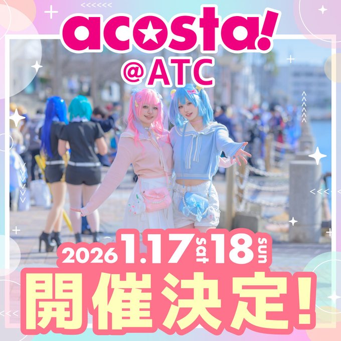 兵庫・神戸・三宮 コスプレBARケラケラなるた🐇໒꒱@oub3n·8時間ルド、ザンカ、エンジン、リヨウ、アモのガチアクタ併せでいます! 参加したい方いらっしゃいましたら、連絡ください🙌引用acosta!WEST(アコスタ)@acosta_west·11月26日🌟🎊イベント開催決定🎊🌟 \1/17(土)&18(日) 🍬 #アコスタATC/ 2026年最初の関西acosta!イベントはここ! 撮影&交流でコスプレ始めを楽しもう🎍 詳細は今後HPやXでお知らせいたします📱✨ ▶️https://acosta.jp125676