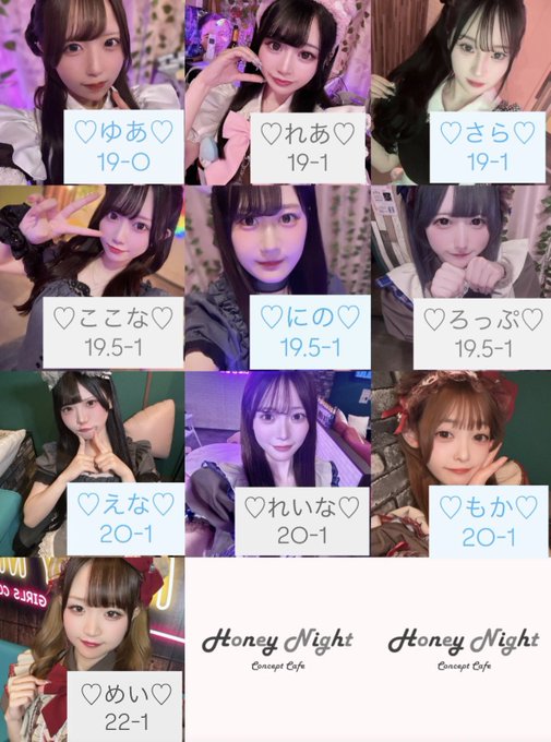 兵庫・神戸・三宮 コンカフェ はにーないと姫路 コンカフェ🎀はにーないと🎀@honeynight2023·🩶本日お給仕のメイド🩶 ゆあ@yuachandesu__ れあ@rea_180_pyon さら@5q2_sara ここな@coconyaxx にの@nino_ux7 ろっぷ@r0ppu_x れいな@_ri7chan えな@enaglcl もか@moca_9014 めい@mei_x_x1122 ここなちゃん卒業イベント🩶🐾 【営業時間】 19:00-1:00 ♥︎ 遠隔 ♥︎ http://honeynight.base.shop22211