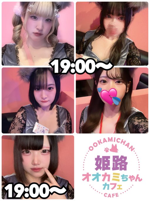 兵庫・神戸・三宮 オオカミちゃんカフェ姫路店オオカミちゃんカフェ姫路店@ookami_himeji4·11月28日(金) 🐺本日の出勤情報🐺 19:00~ 🩶ちい🩶あい 🩶らて🩶めめ 🩶ねむ 20:00~ 🩶みりあ🩶ろん 🩶みやび🩶ゆな 🩶おと 20:30~ 🩶もな🩶りん 21:00~ 🩶しお #オオカミちゃんカフェ #姫路 #コンカフェ1115