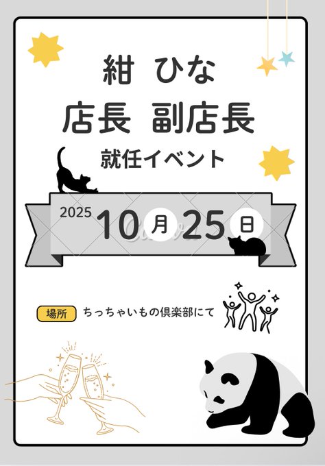 れもん🍋さんがリポストひな@hina3_nyan·この度ひな 副店長 になる運びとなりましたΣ('ω'ノ)ノ 来月、10月25日に紺さんと一緒に就任イベントをさせて頂きます!!お時間ありましたら是非ちぃくらに遊びに来てください🙇🏻♀️⭐️!!726984