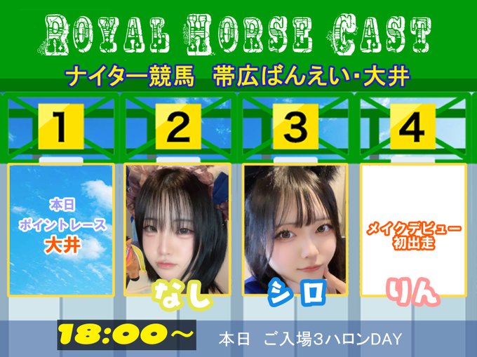 心斎橋・ 宗右衛門 ROYAL HORSEシロ@rc_crew_siro·4時間学校長引いて10分ほど遅れます💦💦💦 ホース今年ラストかもなので全員来てください……引用ROYAL HORSE🏇ろいやるほーす@royalhorse2024·10時間12/1(月)本日の出走キャスト🏇 本日ご入場3ハロンDAY❣ ナイター競馬🌃帯広ばんえい・大井 梨 @rh_uma_nashi シロ @rc_crew_siro りん 初出走 #競馬 #コンカフェ #心斎橋 #d払い3139
