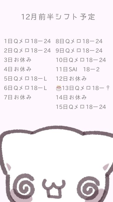 難波・日本橋 Cafe&Bar QuteMellow -きゅーめろ-固定ましろ🤍@mashiro__nyan·12月前半シフト予定❕ Qメロ 13日わんわん生誕祭です!🎂 爆飲みしちゃうからね〜 SAI 週末全部周年イベントです🎉 私は20日だけいてます! 今年ももうすぐ終わっちゃうから早く会いに来てね!年明ける前に会いたいよ16499