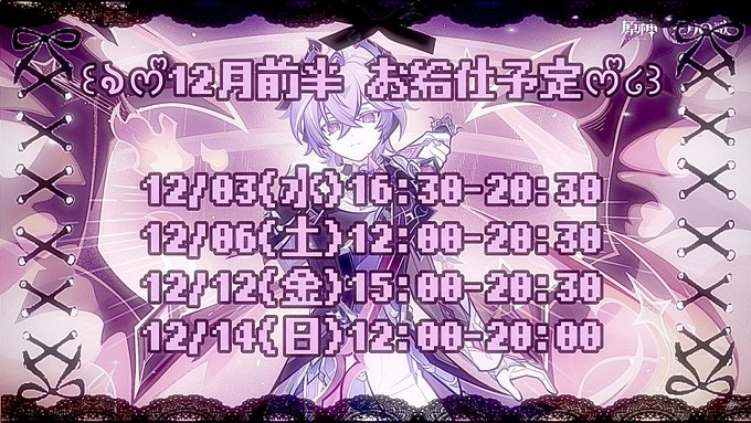 かれん@karen__168·12月前半☆ 3.7.10.11.14日 全部19-23まで!! 6.7日 わんちゃんイベント⑅︎ᩥ𞄵•ܸ · •ܸ⑅︎ᩥ𞄵 12.13.14日 アニコスイベント💖 12月((゚ロ゚;)ハヤ!待ってます😳😳😳111351