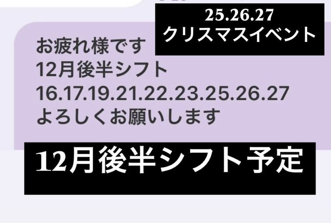 難波・日本橋 LovePointしゅうほ@LP_shuho·12月前半シフトです🙇🏻🩷6248