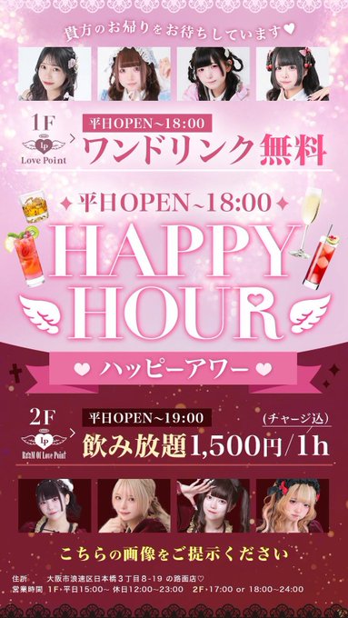 心斎橋・ 宗右衛門 私が1番になりたいのっ!💖わたいちっ!🌟@wata_ichi_1·本日17:00-23:00でやってます✨ 60分 飲み放題 1500円🎀 ミナミ最安値でお遊びいただけます🌟 ご来店心よりお待ちしております😊 〈出勤メンバー〉 うい 17-23 @wata1_uinyal ひより 17-23 @pck_wata1 ましろ 18-23 @821mashiro てん 18-23 @wata1_ten #コンカフェ #大阪 #難波 #ミナミさらに表示26453