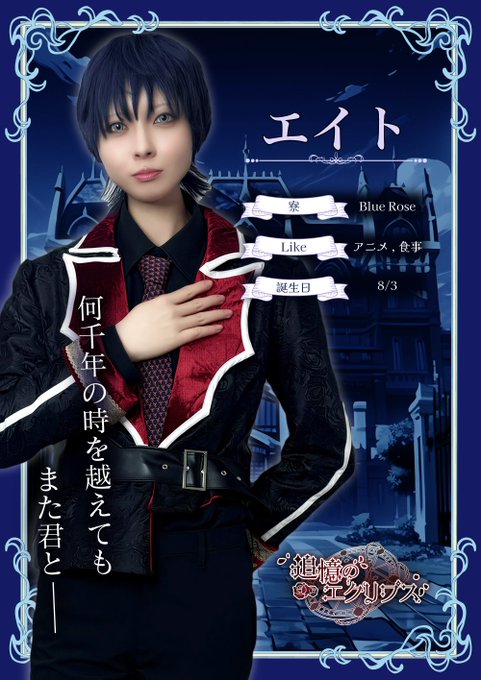 難波・日本橋 追憶のエクリプスロズ🌹@追憶のエクリプス@rose_tsuieku·6時間エイトくん!! 青髪似合ってる!💙 初めましてした時からいろいろフォローしてくれて勝手にお兄さん的存在だと思ってます、包容力の塊引用追憶のエクリプス🦇12/15OPEN大阪男装コンカフェ@tsuioku_eclipse·12月12日Vamp紹介 ˚˙༓࿇༓˙˚˙༓࿇༓˙˚˙ 📕Vamp紹介🦇 ˚˙༓࿇༓˙˚˙༓࿇༓˙˚˙ エイト @eito_tsuieku Blue Rose クールで冷静沈着 冷たく見えるが寄り添う姿勢 #男装コンカフェ #エクリプス学院3127