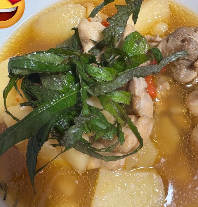 難波・日本橋 Cafe&Bar QuteMellow -きゅーめろ-えんま(閻魔)@sakuramochi543·さっぱり鶏じゃがとナスとキャベツの和風スープ こういう系の料理で初めてポン酢使ってみたからどんな味するかわからんかったけど意外と合ってて美味しい #閻魔の地獄飯19180