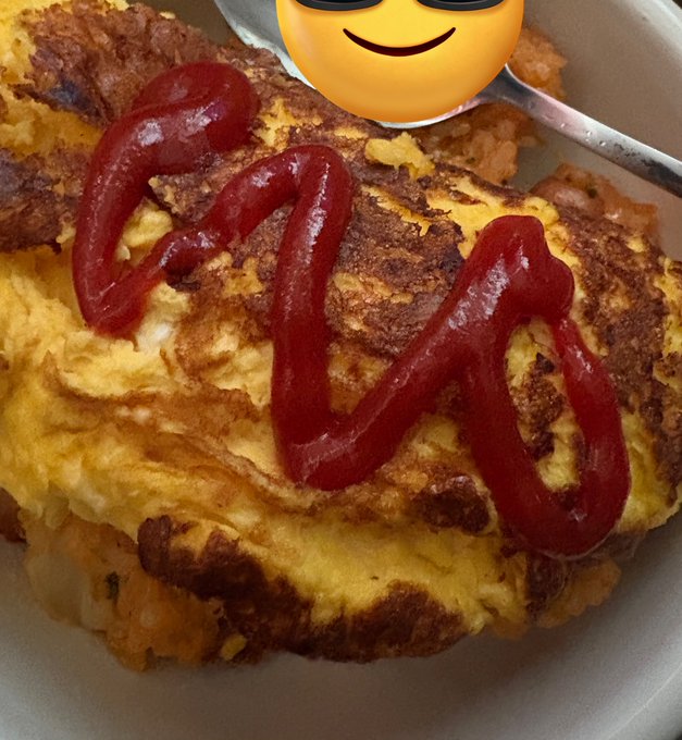 難波・日本橋 Cafe&Bar QuteMellow -きゅーめろ-えんま(閻魔)@sakuramochi543·チーズオムライス ケチャップライスも優しい甘さやし オムはこげたけど中の断面ふわふわやからよかった😌❤️🔥 #閻魔の地獄飯19182