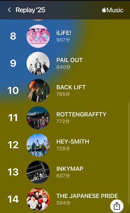 心斎橋・ 宗右衛門 Qooaiぽにっと!ぽにたま⭐️@poninyamu·2025の聞いたランキングみたいなん全部バンドやのに急なiLife死んだ28169