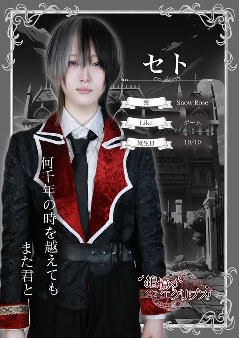 難波・日本橋 追憶のエクリプスロズ🌹@追憶のエクリプス@rose_tsuieku·6時間セトくん! このお写真が好きすぎて実は出てから毎回見に行ってる、愛しい 本当にお顔が綺麗で笑顔も素敵です❅引用追憶のエクリプス🦇12/15OPEN大阪男装コンカフェ@tsuioku_eclipse·12月7日Vamp紹介 ˚˙༓࿇༓˙˚˙༓࿇༓˙˚˙ 📕Vamp紹介🦇 ˚˙༓࿇༓˙˚˙༓࿇༓˙˚˙ セト @seto_tsuieku -Snow Rose- 限られた高貴な血筋 平和主義で優しい #男装コンカフェ #エクリプス学院5197