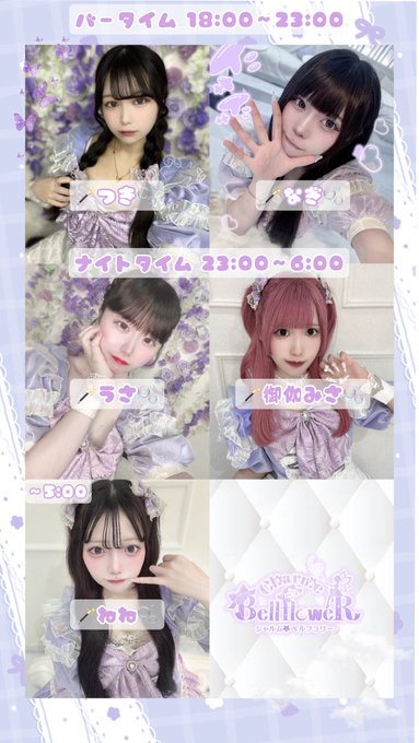 心斎橋・ 宗右衛門 Charme BellfloweR🪄︎︎charme BellfloweR🧚♂️🫧@C_bell_floweR·本日の妖精さん🧚♂️🪄︎︎⋆゚ バータイム18:00~23:00 つき@tuki_tuki_s2 なぎ@a_nagi_7 ナイトタイム23:00~6:00 うさ@usas2_S2 御伽みさ@misankamo ねね@netannimu ~5:00 #ミナミコンカフェ33125