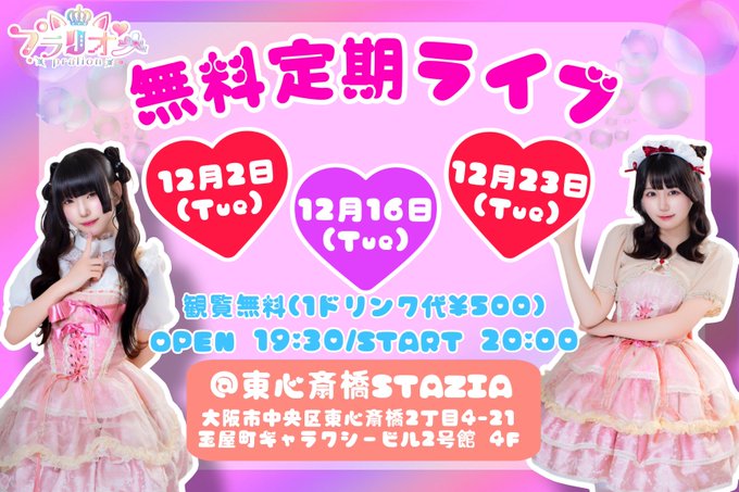 心斎橋・ 宗右衛門 STAZIA―心斎橋アイドルコンカフェ―白兎火ユキ【プラリオン】@yuki_shiratobi·13時間おはようー❣️ほんこち✡︎⋆꙳(〃𐑎▾𐑎〃)✡︎⋆꙳ あえるの〜〜〜??👂👂引用プラリオン@pralion_idol·11月28日【🩷#プラリオン ライブ情報🤍】 12月もプラリオンの無料定期ライブを開催いたします💪 ぜひ、プラリオンが少しでも気になっている方やお友達と一緒にぷらっと見に来てください🥰🥰 🐱開催日🐱 12月2日(火) 12月16日(火) 12月23日(火)🎅クリスマスイブイブ🎄 ⚠️逢生、白兎火のみの出演です⚠️4119427