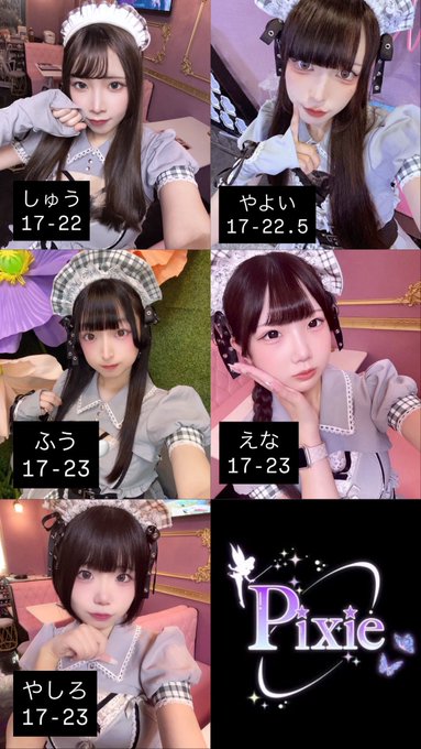 難波・日本橋 MaidCafe Pixie🦋🧚♀️MaidCafe Pixie🧚♀️🦋@maidcafe_pixie·17-22 しゅう@syuu_pixie 17-22.5 やよい@yayoi_pixie 17-23 ふう@fuu_pixie えな@ena_pixie やしろ@yashiro_pixie たくさんのご来店お待ちしております💟1115