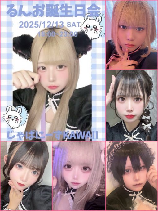 難波・日本橋 じゃぱにーずKAWAiiじゃぱにーずKAWAii(公式)@JPNZKAWAiiN·🎀12/13(土)ログインメンバー🎀 🎂本日は「るん」お誕生日会🎂 るん@ru_n_jap 18-23 みり@mi_ri_jap 18-23 かえ@ka_e_jap 18-23 りりあ@atmdesuyan_ 18-23 ななせ@nanasejpnzN 20-23 あめ@a_me_jap 20-23 #コンカフェ #ヲタロード #可愛いは正義165