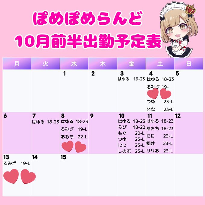 るみざ☦︎︎@rumiza_9ru·ぽめぽめらんど出勤日 8日 19- 12日 19- 13日 19-2212