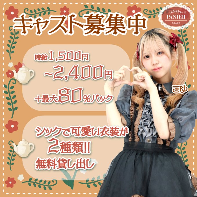 パニエ┃大阪・日本橋🌹貴族令嬢コンカフェ@cafebar_panier·*𖧷───𖧷───𖧷* ⋆˳˙𓊆キャストさん募集中𓊇˙˳⋆ ¥1,500~+ドリンクバック50%の 高時給スタート⟡ インフルエンサー多数輩出⟡ SNS総フォロワー数約50万人⟡ *˖⁺𖧷───𖧷───𖧷⁺˖* 〖ご応募⇛https://lin.ee/M3VIMDx〗 ※高校生不可 #難波 #オタロード #コンカフェバイト13