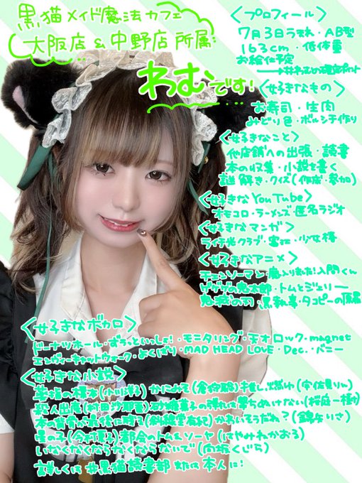 心斎橋・ 宗右衛門 黒猫メイド魔法カフェ大阪店わむ📚🖋1/25 生誕&周年@wamu_kuroneco·知ってもらう機会も増えたので最新版出しときましょかねぇ、、2271789