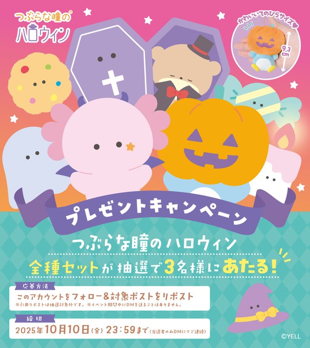 れい🍋次回Live▶10/7,15,12/16さんがリポストつぶらな瞳の仲間達【公式】@tsuburana_aqua·🎁🎁プレゼント企画🎁🎁 🎃 つぶらな瞳のハロウィン 25種 👻 全種セットを抽選で 3 名様 にプレゼント✨ 📋応募方法 ① @tsuburana_aqua をフォロー ② このポストをリポスト(10月10日23:59まで) ※引用RPは抽選対象外です ※イベント期間中にDMを送ることはありません191,4385683.7万
