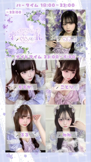🪄︎︎charme BellfloweR🧚♂️🫧@C_bell_floweR·本日の妖精さん🧚♂️🪄︎︎⋆゚ バータイム18:00~23:00 らん@rn5_oz ~22:00 つき@tuki_tuki_s2 ナイトタイム23:00~6:00 ももか@yanid0ll ことり@kotorin_uoxou_ るる@rrrrruru525 ねね@netannimu #ミナミコンカフェ43533