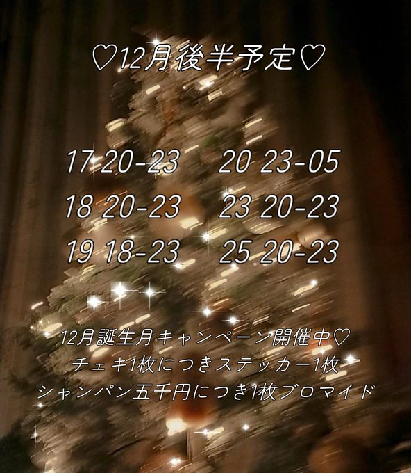 難波・日本橋 じゃぱにーずKAWAiiまゆ💟@ma_yu_jap·12月後半予定です💁 12/21お誕生日! 20日のナイト来てくれたら年齢変わる瞬間一緒に過ごせるよー!"(ノ*>∀