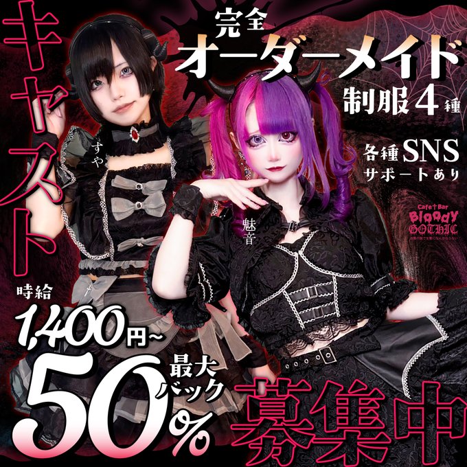 難波・日本橋 クロナイクロナイ┃大阪・日本橋🦇魔界コンカフェ@bloody_gothic_·クロナイでは使い魔を募集しており〼。✝️ 🦇自社スタジオ完備 🦇レンタル衣装300着 🦇作り込まれた世界観 🦇完全オリジナル制服2種類 魅力沢山なクロナイで働いてみませんカ❔✨ 🌙ご応募🌙 →https://line.me/R/ti/p/@516dnhlp?ts=01201204&oat_content=url… ※高校生不可 #大阪コンカフェ #日本橋 #魔界 #ゴシック #ゴス系682
