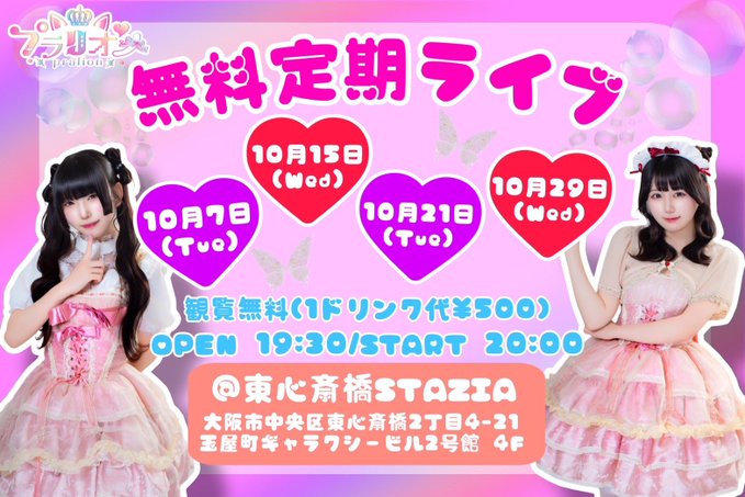 白兎火ユキ【プラリオン】さんがリポスト白兎火ユキ【プラリオン】@yuki_shiratobi·9時間おはよう〜⊂( ᴖ ̫ᴖ )⊃ 明日無料定期ライブありまーす🦹♂️プラリオン見た事ないって人にもおすすめだぞー!そしてまたまた✨新曲披露✨します♩ペンライト持ってきたほうが楽しめる㊙️かも♩ここまで至近距離でライブ見れるのはSTAZIAだけ❣️会えるー?(≡^.^≡)♪引用プラリオン@pralion_idol·10月1日【🩷#プラリオン ライブ情報🤍】 10月よりプラリオンの無料定期ライブの開催が決定いたしました🙌🏼🙌🏼 ぜひ、プラリオンが少しでも気になっている方やお友達と一緒にぷらっと見に来てください🥰🥰 🐱開催日🐱 10月7日(火) 10月15日(水) 10月21日(火) 10月29日(水) ⚠️逢生、白兎火のみの出演です⚠️3419618