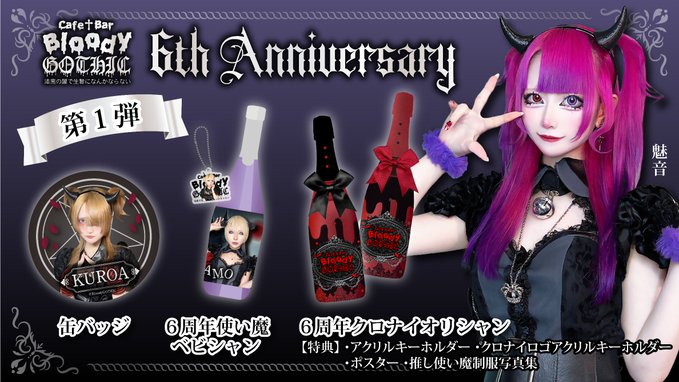 クロナイ┃大阪・日本橋🦇魔界コンカフェ@bloody_gothic_·👻6th Anniversary🥀 クロナイ周年企画 第一弾 缶バッジ 使い魔ベビシャン クロナイオリシャン 10/1~販売ヲ開始いたしマス✡️ 是非手に入れてくだサイ🕸️ #クロナイ #コンカフェ #大阪4164