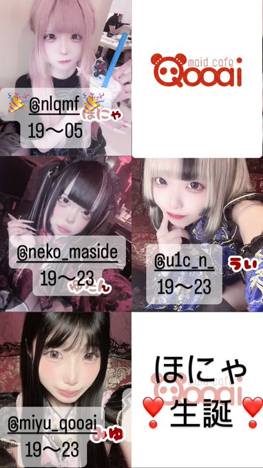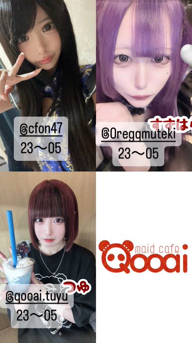 心斎橋・ 宗右衛門 QooaiQooai 心斎橋ミナミ本店【コンカフェ】@Qooai_·🐼本日のQooai心斎橋 ログインキャストさん🐼 ◇ほにゃ @nfqzy 19~05 生誕🎉 ◇うい @u1c_n_ 19~23 ◇みゆ @miyu_Qooai 19~23 ◇ゆたん @neko_maside 19~23 ◆ちゅんた@eugyvz 23~05 ◆すずはらせんせ @0regqmuteki 23~05 ◆つゆ @lli_tuyu 23~05 ミナミにあるコンカフェ Qooai -クーアイ-さらに表示7196