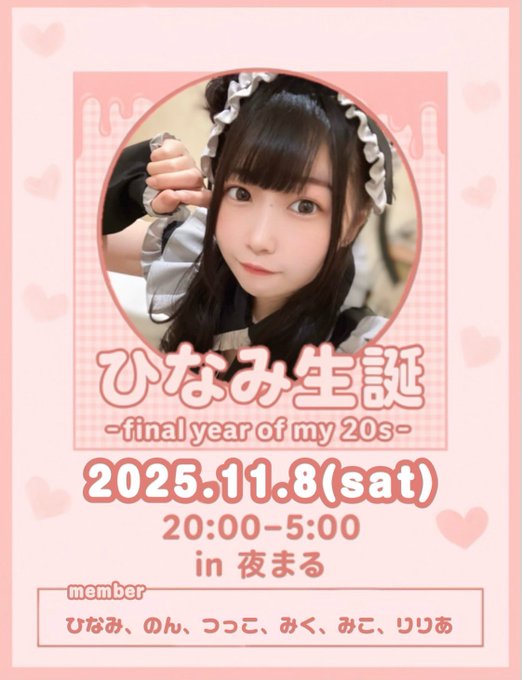 ひなみ@11/8生誕@_h_n_m_·【🌟重要なお知らせ🌟】 11月8日に、 生誕イベントをさせて頂くことになりました! オリシャン等、詳細はまた後日ツイートします🩷 この日だけはどうか来て頂けると嬉しいです! 顔出していただけることが何より嬉しいので ご来店、お待ちしております🪄💫 本当に、よろしくお願いします>