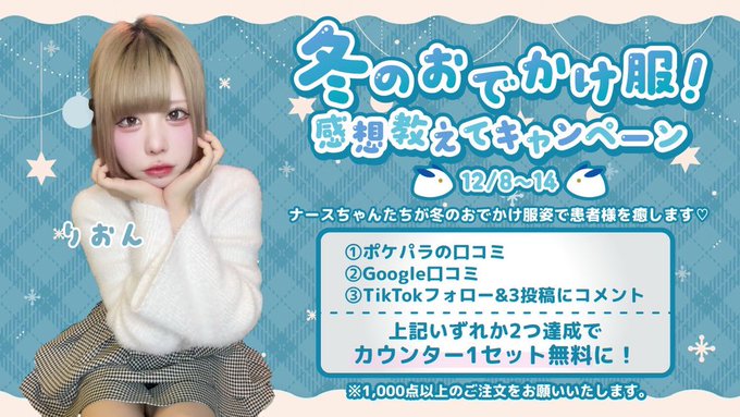 心斎橋・ 宗右衛門 あるこほりっく大阪院公式【あるこほりっく大阪院】@alco_osaka_in·🏥あるこほりっく大阪院🏥 元気に開院しました💊 19時にパルファン大阪から まるちゃん@maru__ww 来てくれます🎵 今日も⬇️ ナースちゃんたちが 冬のおでかけコーデに☝️ 口コミやコメントで カウンター1セット無料🉐💕 ご来院をお待ちしております❣️ #コンカフェ #宗右衛門町 #ミナミ #難波0:2312422