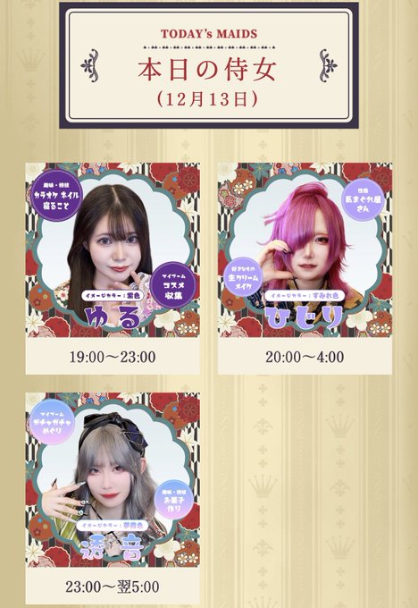 心斎橋・ 宗右衛門 Romantique(ろまんてぃーく) ミナミコンカフェ大阪ミナミのコンカフェ Romantique(ろまんてぃーく)@RomantiqueCafe·🌹本日:12/13の出勤侍女🌹 透音 @sukine_Beril ひじり @hijiri_roman ゆる @yuru_romantiqe 19:00〜OPEN✨ ご来館お待ちしております🫧 ▽公式HP https://romantique.moe ▽求人 https://romantique.moe/recruit/ #ミナミコンカフェ #大阪コンカフェ #コンカフェ嬢177