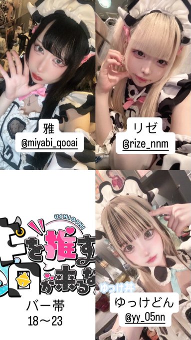 心斎橋・ 宗右衛門 牛を推す日が来るなんて牛を推す日が来るなんて。【ミナミのコンカフェ】@ushioshi_·🐮 本日のロギュインは... 🍼 ○雅 @3yabi_Qooai 18-23 ○リゼ @Rize_pom 18-23 ○ゆっけどん @mochimochig0han 20-22 ●せい@Sei_nyanko_ 23-06 ●そのぎ@sngchankr 23-06 ●るい@jl2k1_ 23-06 ご帰宅お待ちしております🎵 ----------------- ●営業時間● 毎日 18:00-翌6:00 ●住所●さらに表示100
