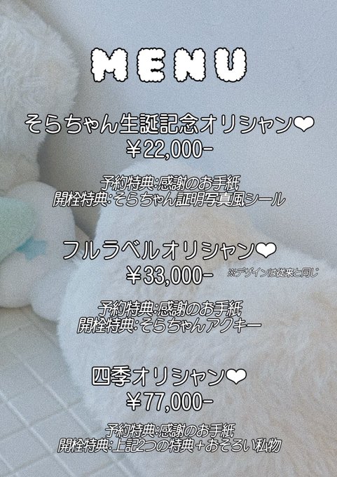 きらら✨@merimero@kirara_merimero·9月19日大好きなそらしゃむの生誕祭きららもお給仕します🌟 途中ライブで抜けるけど17-22の予定❕ 皿洗いは任せてなので🧽みんないっぱい親子丼食べるんだよ〜🐣✌引用芙愛武・sea・そら⛅️@sora_merimero·9月18日【 生誕メニュー大公開 】 2025.09.20(土) 12:00~22:00に開催される 〈そら生誕祭2025〉のメニューになります🎀 フルラベルオリシャンも在庫限り出せることになりました❕🩵 初アクキー特典です|•͈ ·̫ •͈ ᐡ)︎︎︎︎︎︎︎︎❤︎ よろしくお願いします❣️29843