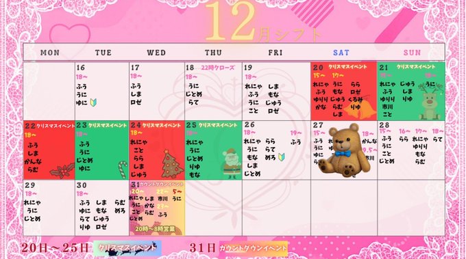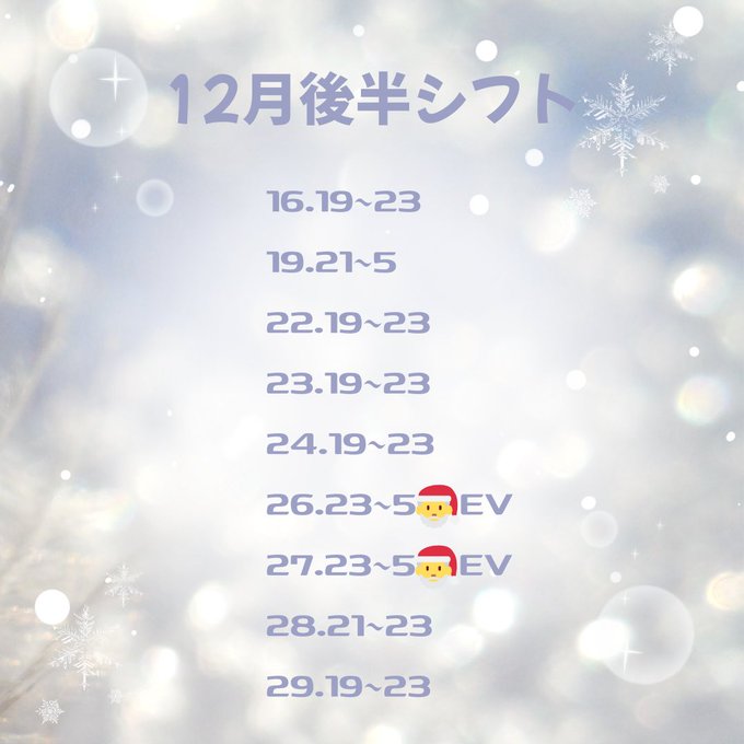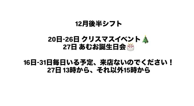 難波・日本橋 cafe &barアンジェール固定しま@あんじぇーる@海老蔵@sHima_v_v·12月後半シフト🎵 20〜25日 クリスマスイベント🎅🏻🎄 31日 年越しカウントダウンイベント🎍 一緒にクリスマスしたいし一緒に年越しもしたいねん‼️110276