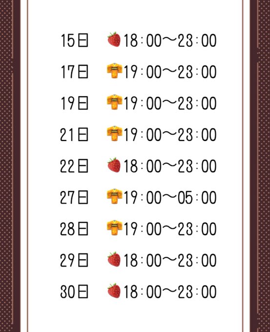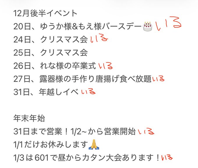 難波・日本橋 Overdose椎葉 菜凪衣 / Nanae@nanae_sheeba·12月後半 お仕事予定 👘…@RomantiqueCafe 🍓…@SB_Overdos153
