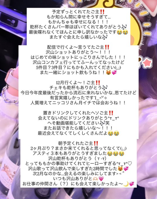 難波・日本橋 Lumiereるか@lu_ka_33·退勤してます!!! まちがえて着替えちゃったから私服で🥺 急遽きてくれたお助けごしゅにロゼぽんしていただきました😭ありがとうт⩊т 他にも精神ダウンしてるときにきてくれたいつものたよりになるごしゅ、初めましてのごしゅもありがとうございました!1882