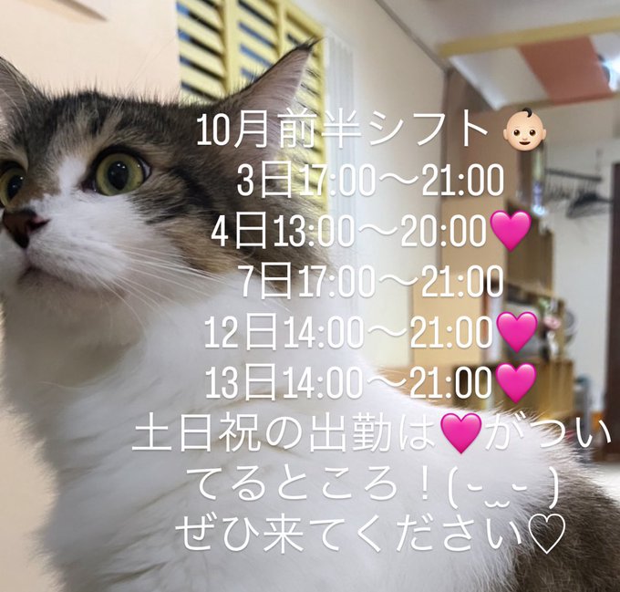 にゅん🪐10月末で店がサ終👈はい❓@Nyun2shisha_plb·10月前半のニュンニュンƪ(•◡•ƪ) 今日の代打出勤含め前半は3回しか会う機会がありません 後半のシフトは未定ですが、先日お伝えした通り10月末でぷらぼ閉店なのでできるだけ会える日を作りたいなって感じですᐡ т · т ᐡ マターリしにおいで🍵💭 @Pretty_Labo #コンカフェ大阪 #コンカフェ嬢PRETTY Lab.5210
