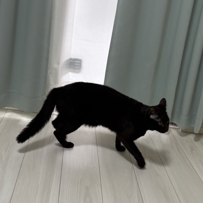れい cloris@rei_cloris·家の外で猫ちゃんたちが喧嘩しているのを聞いてそそくさ逃げる猫1432